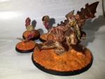 I anledning af at der igen kommer nogle ny Tyranid enheder i disse uger hev jeg nogle af mine gamle, umalede væsner ned af hylden og fik dem malet. Både fordi snakken om de ny enheder fik mig i stemning men også fordi jeg ret godt kan lide det mere naturlige farveskema jeg har fundet til dem (se mit indlæg om min Hive Tyrant for detaljer om skemaet). Her udvidede jeg det dog med en mørk lyserød hudfarve (Cadian Fleshtone highlighted med Kislev Flesh) til de svulmende udposninger.