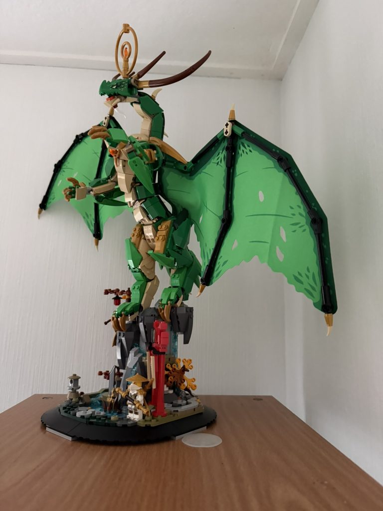 Jeg har set en god del Lego Ninjago med min datter, og da jeg samtidig stadig elsker at bygge Lego (hvilket hun heldigvis også har taget til sig) kunne jeg ikke stå for det da Proshop for en del måneder siden har et ekstremt godt tilbud på få eksemplarer af 14+ Ninjago Legends figurerne. Oprindeligt havde jeg set mig lun på Ildmech figuren, men den nåede at blive udsolgt så jeg købte den store drage i stedet. Og hvem kan stå for cool drager?